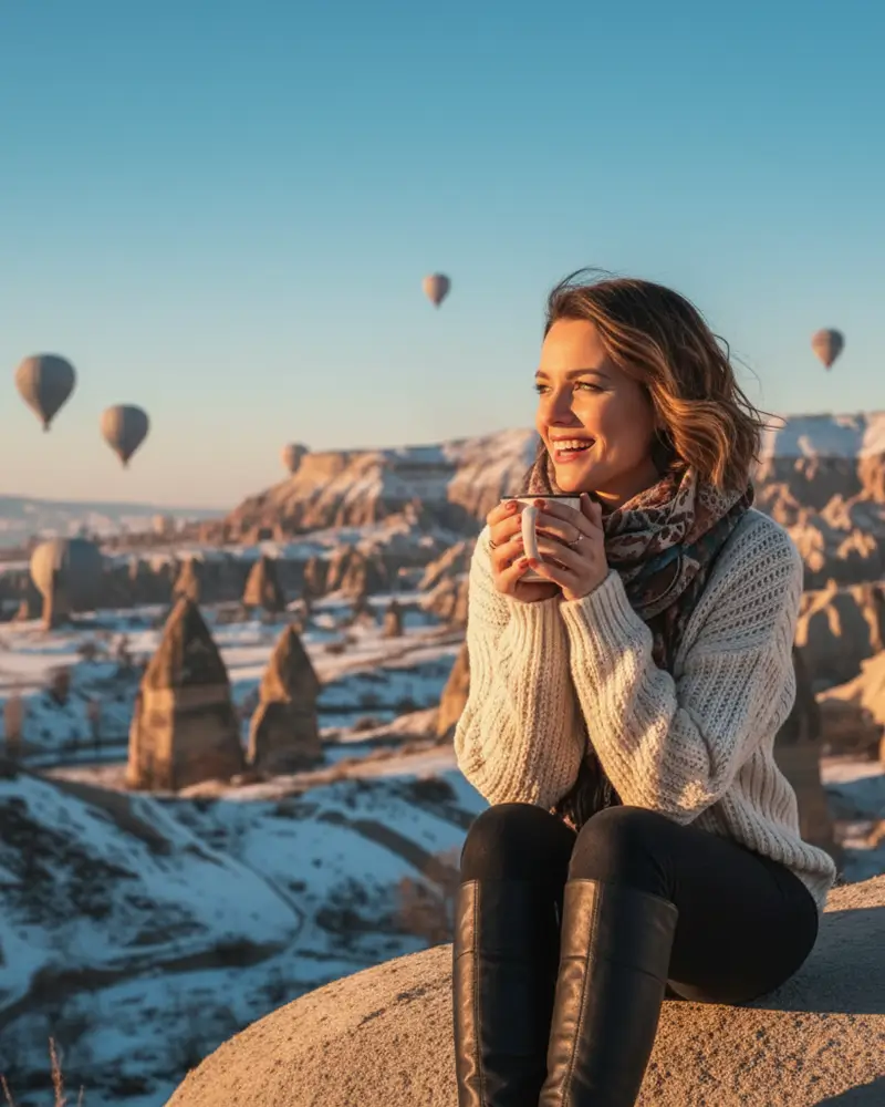 Finally, ascending into the sky in Cappadocia during December is not just an activity; it is one of the best ways to feel the spirit of the season. Snow-covered fairy chimneys and crafts gliding in the morning light offer visitors an unforgettable winter tale.